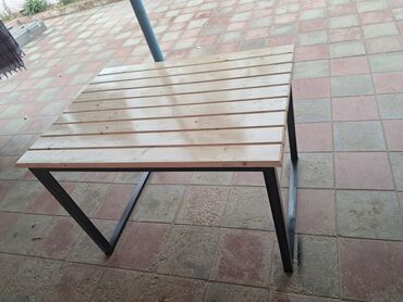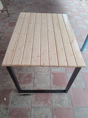 Sənaye üslubunda taxta üstlü masa