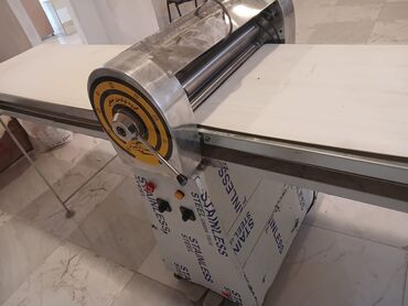 Sənaye tipli xəmir yayma maşını (paslanmayan polad) - Brend/işarə: RMS (korpus üzərində qeyd olunub) - Elektriklə işləyir: standart şəbəkə fişi ilə - İkili rulon sistemi – xəmirin bərabər qalınlıq...