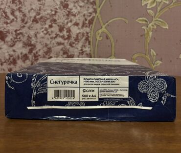 Sneguroçka ofis kağızı – A4 format. - Topdan və parakəndə satış - Alış da mövcuddur ✔️ - Format: A4 - Miqdar: 500 vərəq - Sıxlıq: 80 q/m² - Ofis texnikası üçün nəzərdə tutulub (printer, kopiy...