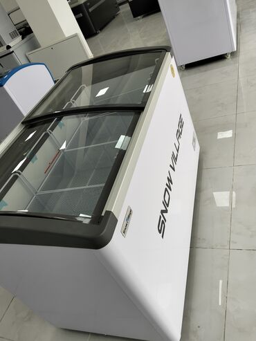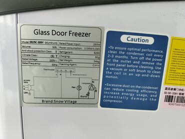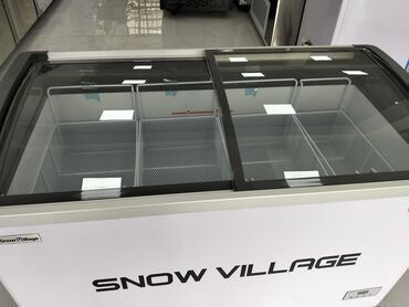 Mağaza, supermarket, kafe və dondurma vitrinləri üçün ideal, geniş və qənaətcil ticarət dondurucusu. Brend: Snow Village. Model və texniki etiket şəkillərdə göstərilmişdir.