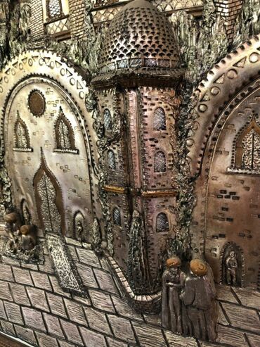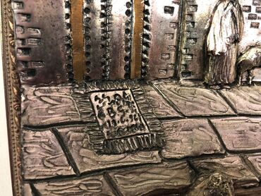 Mis toru (bas-relyef) tablo - Material: Döymə mis lövhə, əl işi relyef. - Kompozisiya: Mifoloji səhnə – məşəl tutmuş qanadlı pərdəli fiqur, aşağıda çiçəklərlə dolu qab üzərində puttolar (kupidlər)...
