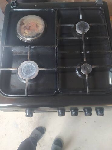 ALEV quraşdırılan qaz paneli - 3 qaz ocağı + 1 elektrikli göz - Sağda mexaniki idarə paneli: 4 ədəd fırlanan düymə, alov tənzimlənməsi -ruçkaları istiliye davamli metal yanmaz erimez - reşotkala...