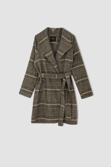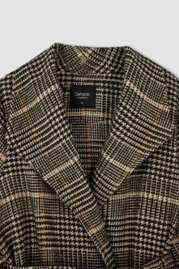 İşlənmişSoğuk kış günlerinizde sizi ısıtacak, ekose kare desenli kuşaklı, ve düğmeli uzun sıcak tutan özelliği ile son zamanların en trend tesettür dış giyim modeli rahat kaşe kumaşı ile tüm kombinlerinizde kullanabileceğiniz DeFacto Kadın Regular Fit Desenli Kuşaklı Kaşe. S Ve M bedene gedir
