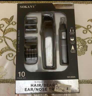 Qutuda göstərilən model: SOKANY SH-666A, 10-piece grooming kit, “Look Sharp” seriyası.
