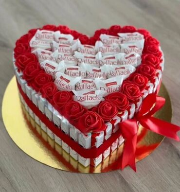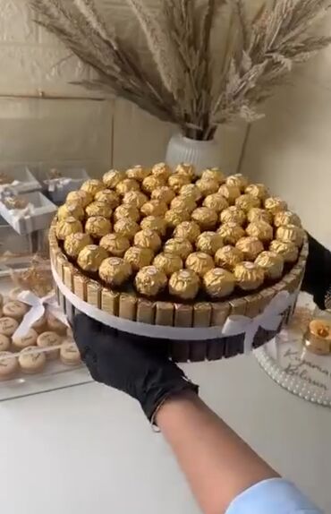 - Ferrero Rocher, Raffaello və digər şokoladlardan hazırlanmış dairəvi və ürək formalı kompozisiyalar