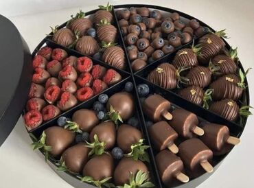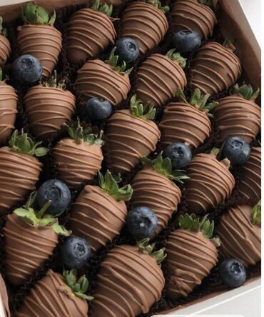 • Ayrı qutuda yalnız şokoladla örtülmüş çiyələk və yaban mersini assortisi.