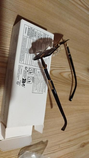 - Dizayn: çərçivəsiz (rimless) konstruksiya, qızılı rəngdə körpü və bərkidicilər