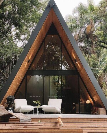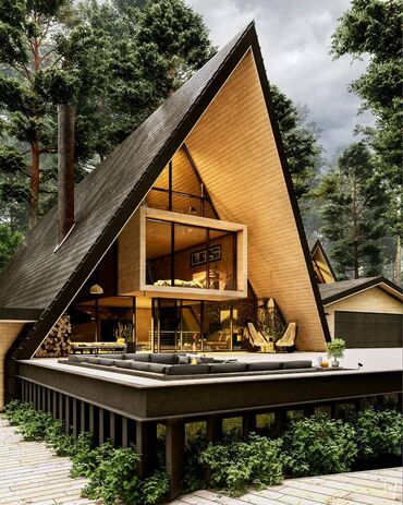 Başlıq: A frame evlərinin tikintisi Təsvir: A-frame (A şəkilli) karkas evlərin layihələndirilməsi və tikintisi xidmətləri. - Karkas sisteminin yığılması: möhkəm taxta konstruksiya, daşıyıcı fermal...