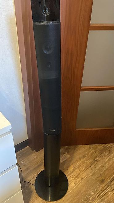 - Markalı 5.1 kanal ev kinoteatrı: 2 ədəd hündür (floor-standing) ön akustik kolon, iri subwoofer və əsas mənbə/receiver kimi Blu‑ray 3D pleyer (Sony).