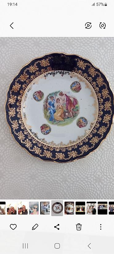 - Dizayn: tünd lacivərt kənar, kənarlarda qızılı naxışlar; mərkəzdə klassik üslubda rəsm kompozisiyası