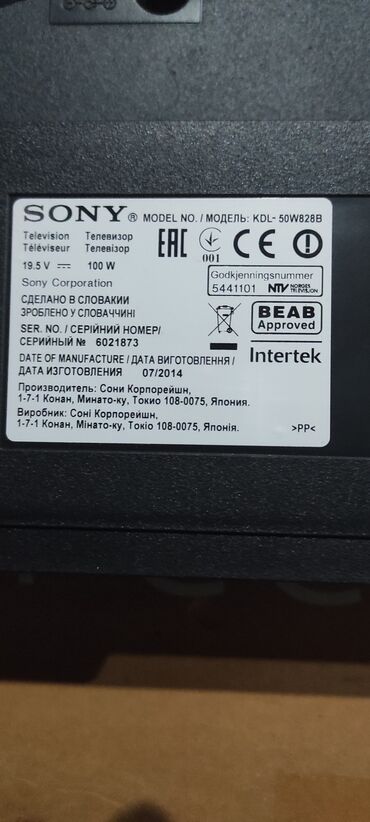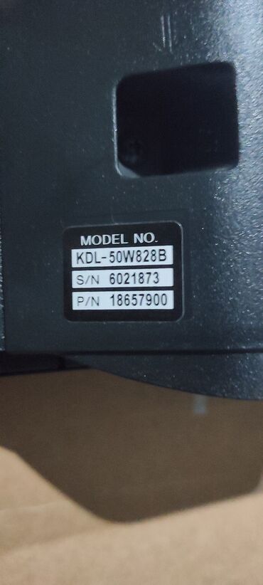 - Model/Seriya məlumatı etiketdə: KDL-50W828B, S/N 6021873, P/N 18657900