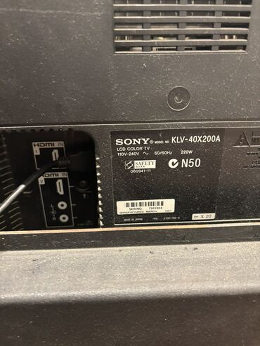 Sony LCD televizor – model KLV-32S400A - Ekran: 32 düym LCD Colour TV - Giriş gərginliyi: 110–240V~ - Tezlik: 50/60Hz - Güc sərfiyyatı: 156W - Seriya nömrəsi: 1904488 (etiketdə göstərilib) - İsteh...