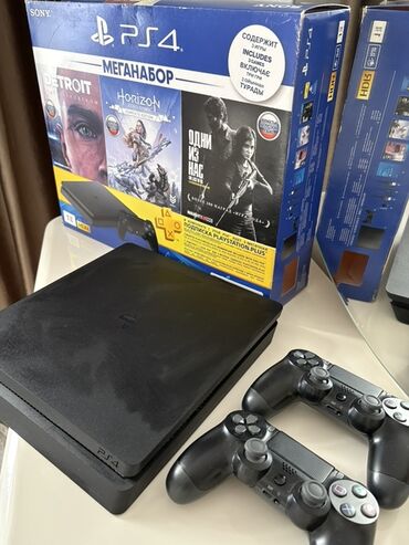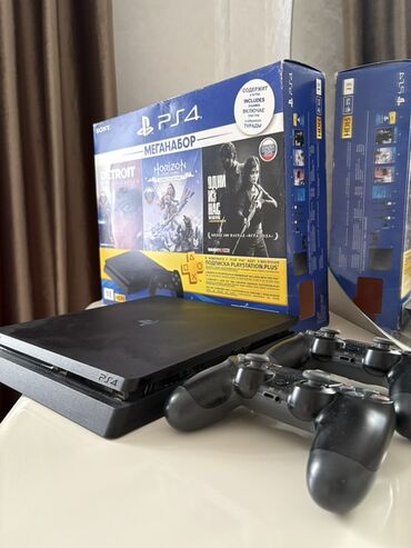 PlayStation 4 Slim 1 tb yaddaş cəmi 3 4 dəfə oyun oynanilib. Üzərində 3 orjinal pultlaoyun konsolu paketi - Konsol: Sony PlayStation 4 Slim (loqo və korpus şəkildə görünür) - Pultlar: 3 ədəd DualS...