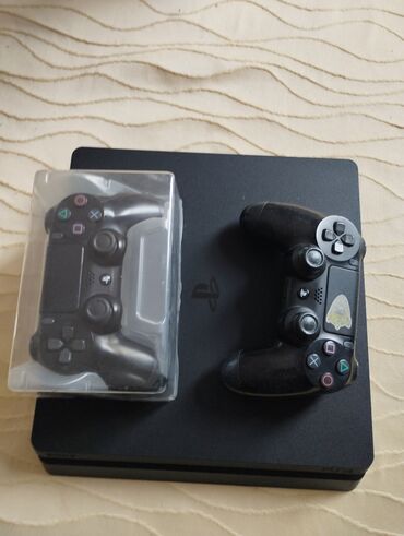 Sony PlayStation 4 (PS4) Slim oyun konsolu ideal vezyetde Temizlik ,Termopasta vurulub , pultlar ideal drift yoxd her sey islekdir . 450 azn 2 pult ile 500 azn 2 pult ve qulaqciq .