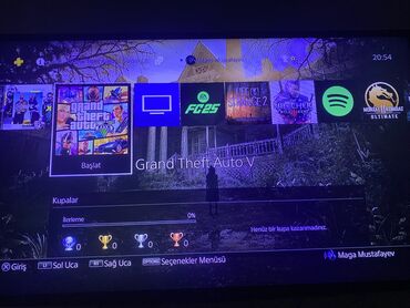 - Konsol TV-yə qoşulu vəziyyətdə işləkdir; trofey və başlatma menyuları görünür