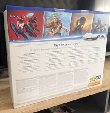 - Qutunun arxasında “Play Like Never Before” təsviri və oyun nümunələri (Marvel’s Spider‑Man, Horizon, God of War və s. vizuallar).