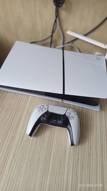 Sony PlayStation 5 Slim oyun konsolu və 1 ədəd DualSense idarəetmə pultu.