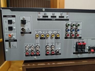 - Geniş ön panel: master volume tənzimləyicisi, input selector, display, input mode, AFD/Movie/Music rejim düymələri, Analog Direct və Muting