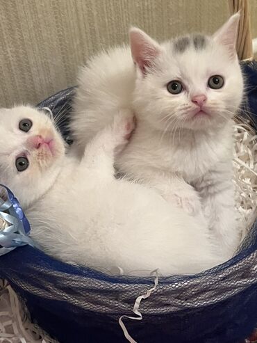 Məhsul: British Short/Scottish Fold balaları Xüsusiyyətlər: - Rəng: ağ və krem tonları, bəzilərində quyruq/ayaqlarda tünd kölgələr - Gözlər: parlaq mavi - Qulaqlar: həm düz, həm də qatlanmış (fold...
