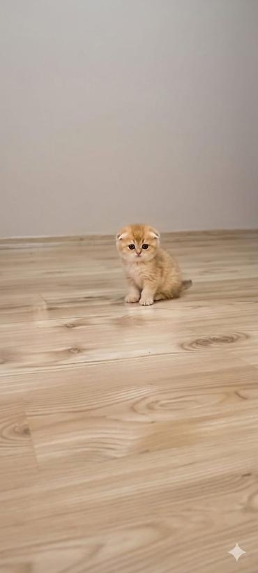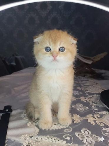Scottish Fold balaları - Cins: Scottish Fold (qulaqcıqları yığılmış) - Rəng: qızılı/cream kölgəli, tük örtüyü sıx və yumşaq - Gözlər: iri, mavi-boz tonlarda - Xarakter: mehriban, sakit, qucağı sev...