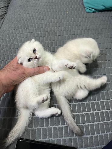 Scottish Fold bala pişiklər – qar kimi ağ tüklü, yumşaq və sıx yun örtüyü, qısa bədən quruluşu və tipik yığılmış (qatlanmış) qulaqlar. Gözlər yuvarlaq və ifadəli, quyruqlarının ucları tünd-boz çalara keçir. Xasiyyətcə sakit və mehriban, ev şəraitinə tez uyğunlaşan, qucağı sevən, uşaq və digər ev heyvanları ilə harmoniyada yaşamağa meyilli.