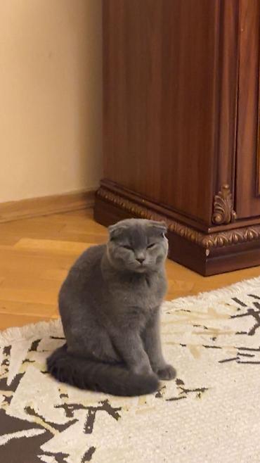 Saf qanlı şotland pişiyi (Scottish Fold/Scottish Straight xəttindən). Rəng: bərk boz (blue). Qıvrıqqulaq valideynlərlə eyni rəngdə. Ev şəraitində böyüdülüb, qumluğa öyrədilib. Xasiyyəti mehriban, sakit və oyuncaqlarla oynamağı sevir. Yüksək tüklü, yumşaq qanadlı quyruq, iri yuvarlaq gözlər, kompakt bədən quruluşu.