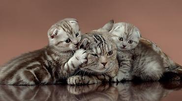 - Yataq/qablaşdırma fotosunda ana pişiklə bir neçə bala göstərilib