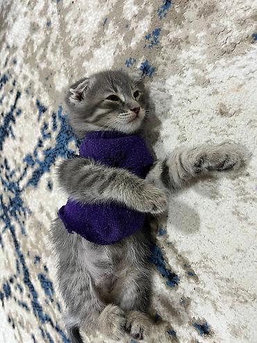Skottiş tipli boz pişik balası - Cins: qısa tüklü boz-mərmər naxışlı, yumşaq tüklü - Quşqulaq formalı yuxarıdan qatlı (fold) qulaqlar, iri yuvarlaq gözlər - Aktiv, mehriban və insanla ünsiyyəti se...
