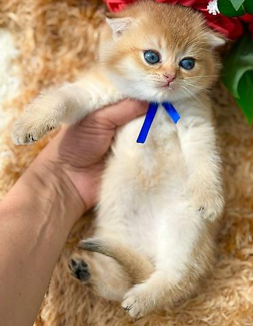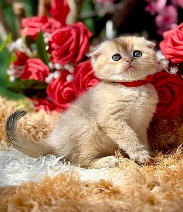 Şirin balaca pişik balaları - Cins: uzun tüklü, yumru üz quruluşlu, böyük mavi/yaşıl gözlü balalar; şəkillərdə həm gümüş-boz, həm də qızılı-köpük rəng çalarları var. Birində qatlanmış qulaqlar (Sc...