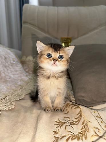 Cins: Britan qısa tüklü (golden shaded tabby rəng) Növ: Pişik balası Təsvir: - Yumşaq, qızılı-krem rəngli, tünd zolaqlı xalı; kürək boyunca qaraqumlu kölgə, qarın və sinə açıq krem. - Böyük yuvarl...
