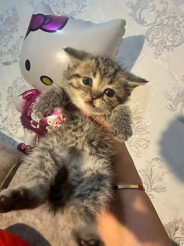 Britaniya qısatüklü balaca pişik balası - Rəng: gümüşi-tabby (boz tonlarda zolaqlı), qarın və pəncələrdə açıq krem-ağ ləkələr - Gözlər: iri, yuvarlaq, mavi-boz çalar - Quyruq: qısa və sıx tüklü - ...
