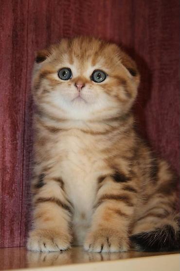 Şotland qıvrıqqulaq (Scottish Fold) balaları - Rənglər: bərk südlü-boz (blue) və smoky-tabby. - Qısa, çox yumşaq və sıx tüklü kürk, iri dəyirmi gözlər, qıvrıq-qulaq quruluşu. - Xasiyyət: mehriban,...