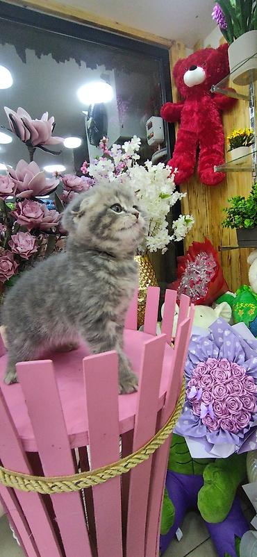 Scottish Fold balaları - Cins: Scottish Fold (qulaqları qıvrıq) - Rəng: boz (gümüşü-boz tonlarda), zolaqlı naxışlar - Gözlər: mavi - Tüklər: qısa və yumşaq, sıx alt tük qatlı - Xarakter: mehriban,...