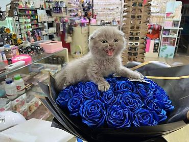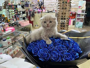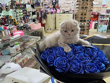 Şotland qıvrıqqulaq (Scottish Fold) balaları - Rənglər: bərk südlü-boz (blue) və smoky-tabby. - Qısa, çox yumşaq və sıx tüklü kürk, iri dəyirmi gözlər, qıvrıq-qulaq quruluşu. - Xasiyyət: mehriban,...