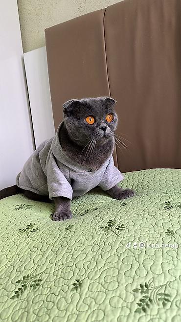 Şotland qıvrımqulaq (Scottish Fold) pişiyi - Rəng: bərk boz (blue/grey), tükü qısa və sıx - Qulaqlar: klassik qıvrılmış, başa yapışıq - Gözlər: iri, ifadəli, kəhrəba çalarlarında - Bədən quruluşu:...