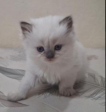 - Rəng: colour‑point (korpusu açıq krem/ağ, pəncə, qulaq və burnu boz‑mavi)