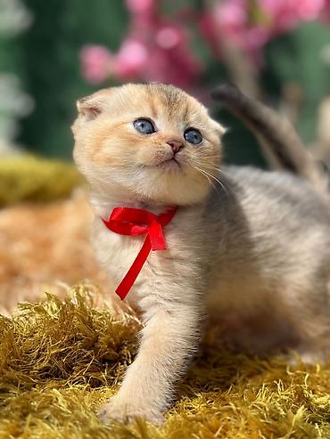 Skottiş Fold balaları – qızılı şinşilla (golden shaded) rəngli, mavi gözlü