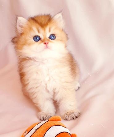 Şotland pişiyi balaları – qızılı kölgəli (golden shaded) rəngdə, böyük mavi gözlü.