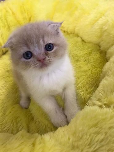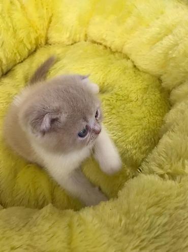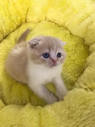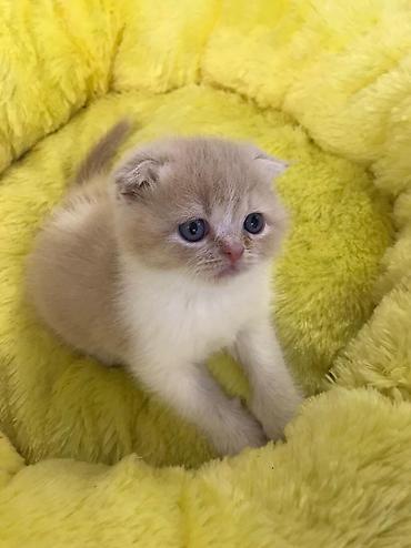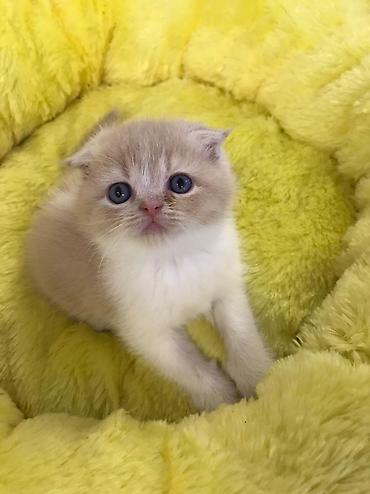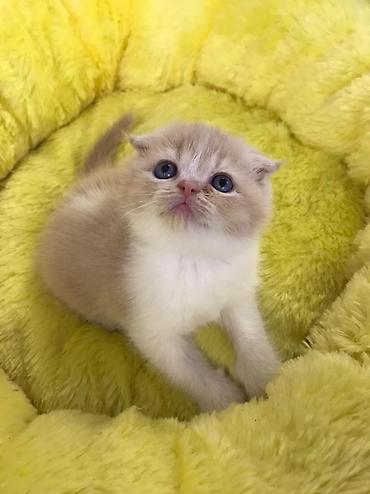 Məhsul: Şotland qıvrım/qulaqcıqlı balaca pişiklər (Scottish Fold/Scottish Straight qarışıq bala görünüşü) Xüsusiyyətlər: - Rəng: krem-bej bədən, boz (blue/grey) point qulaqlar, pəncələr və quyruq;...