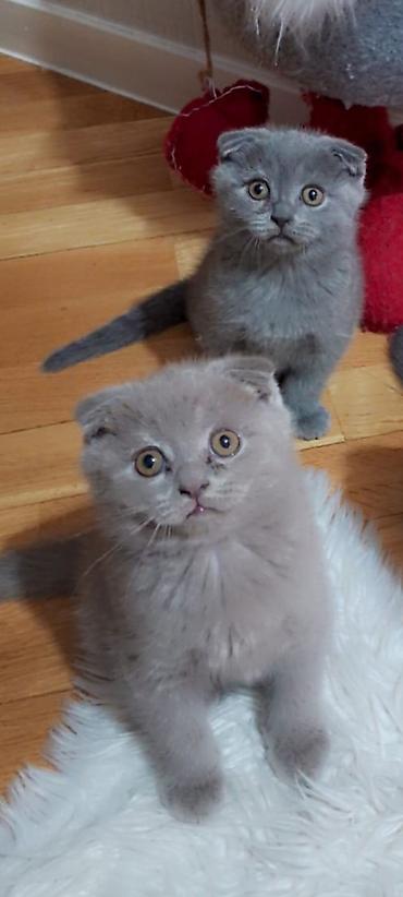 Scottish Fold pişik balaları - Cins: Scottish Fold (qulaqcıqları qatlanan) - Rənglər: Bütöv tünd-boz (solid grey) və boz-ağ bicolour - Xasiyyət: sakit, mehriban, qucağı sevən, ailə və uşaqlarla uy...