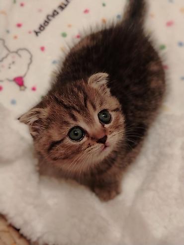 Scottish Fold balaları - Cins: Scottish Fold (qulaqcıqları qatlanmış) - Rəng: qızılı-şəbəkəli (golden/black tabby) tonlarda, zolaqlı naxış - Gözlər: iri, dəyirmi, mavi-yaşıl çalar - Xüsusiyyətlər:...
