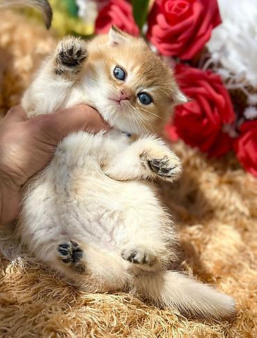 Britan pişik balaları – Scottish Fold/Scottish Straight tipli, krem rəngli, mavi gözlü. Xüsusiyyətlər: - Rəng: krem (point tonlarla), qulaqlar yığılmış/yarı-yığılmış və düzqulaq variantları var - ...