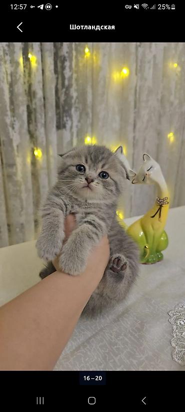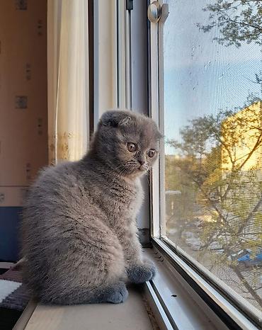 - Cins: Şotland (Scottish Fold/Scottish Straight balalar – şəkillərdə həm yatan qulaqlı, həm də düz qulaqlı balalar görünür)