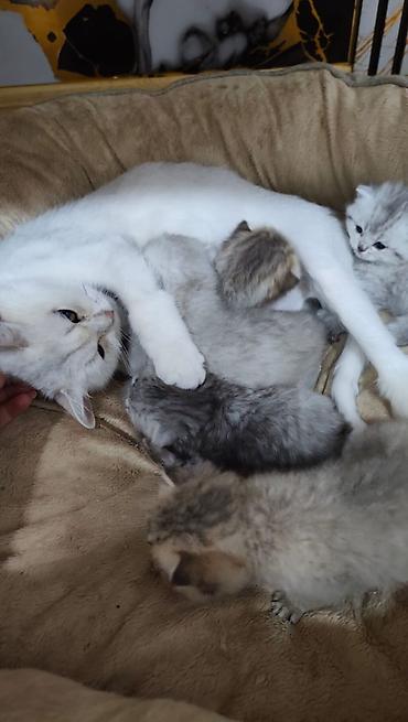 - Cinslər: Scottish Fold/Scottish Straight və British Shorthair qarışığı (şəkillərdə ana pişik və bala qardaş-bacılar görünür)
