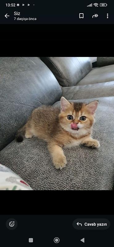 Şotland qıvrıqqulaq (Scottish Fold) tipli balaca pişik balası - Rəng: qızılı–tünt tünd tabby (qəhvəyi-qızılı tonlarda), sinə və pəncələrdə açıq krem ləkələr - Qulaqlar: yumşaq qatlanan, başa yaxın...