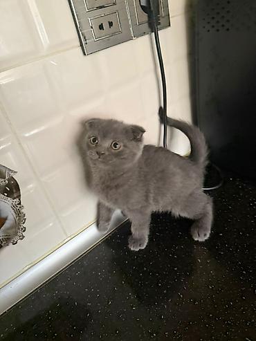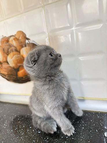 Skotiş pişik balaları – boz (blue) rəngli Xüsusiyyətlər: - Cins: Scottish Fold və Scottish Straight (qulaqları qatlanan və düzqulaqlı balalar var) - Rəng: vahid tünd-boz/blue - Tük quruluşu: yumşa...