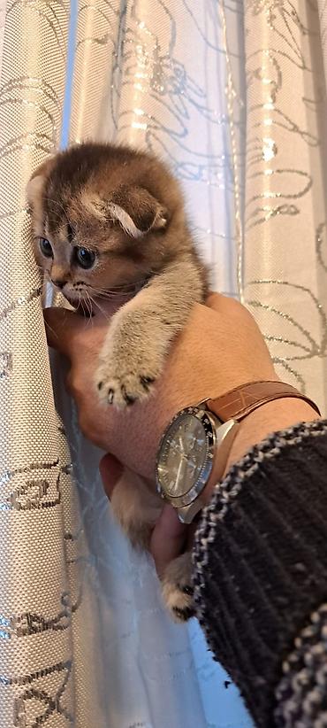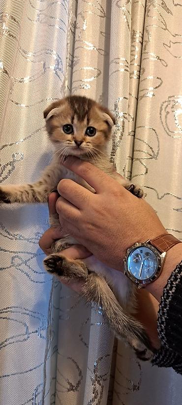British Shorthair Scottish Fold bala pişik - Cins: Scottish Fold (qatlanmış qulaqlar), British tipli yumşaq tüklü kürk - Rəng: gümüşi-boz tabby, sinədə ağ ləkə - Kürk: qısa və sıx, baxımı asan, az...