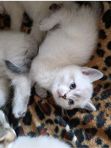 Ağ rəngli balaca pişik balaları - Cins xüsusiyyətləri: yumru sifət, qısa və sıx yun, iri ifadəli gözlər; bəzi balalarda qatlanmış qulaqlar. - Rəng: süddən-ağ, bəzi boz-krem kölgələr və pəncələrdə ...