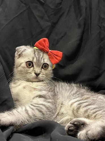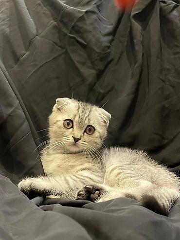 Şotland balası 1 ay 10 günlükdür. saf qan cins pişiklərdir. Ata və ana şotlanddır. - Rəng: gümüş-boz (silver tabby tonlarında) - Qulaqlar: tipik qıvrım, başa yaxın - Gözlər: iri, yumru - Tük quru...