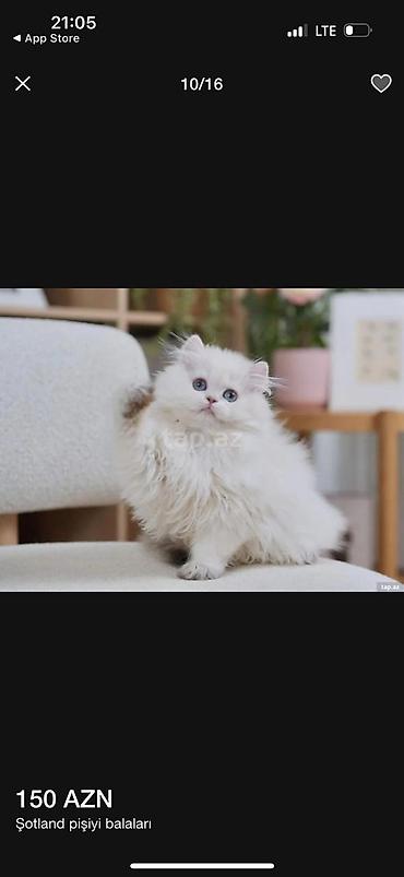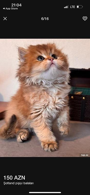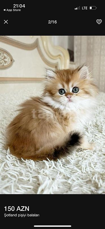 Cins: Şotland qıvrım (Scottish Fold) balası – qızıl rəngli, uzun tüklü tip Rəng: Golden (isti tunc-qızılı ton), açıq krem alt tük Gözlər: Dərin mavi-boz körpə gözləri (rəng böyüdükcə tədricən dəyiş...